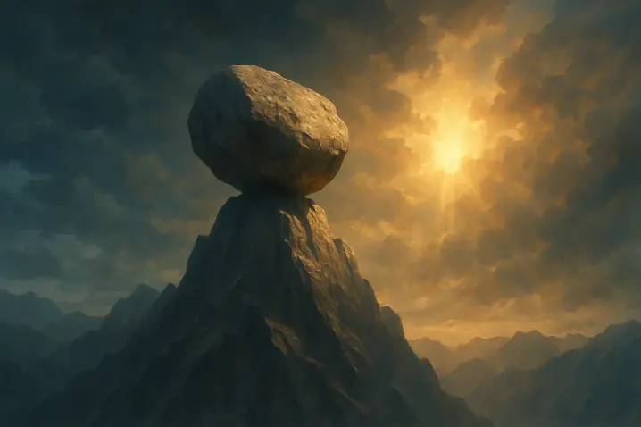 Per prendere l’esempio della pietra, è solo attraverso Yeshua che essa, cioè noi, viene riportata alla cima del monte mantenendola in equilibrio, cioè alla presenza di Dio.